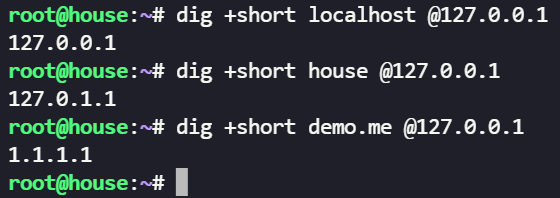 --expand-hosts 参数可以支持对 hosts 文件中的主机名,添加域名后缀的解析,使用 --domain=<domain> 参数指定后缀,比如上例中,如果添加参数 --expand-hosts --domain=mydomain.com ,那么解析 house 或者 house.mydomain.com 都会返回 hosts 文件中的配置。