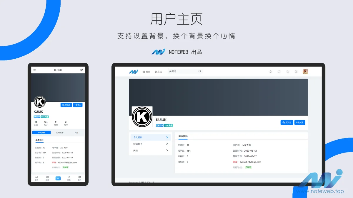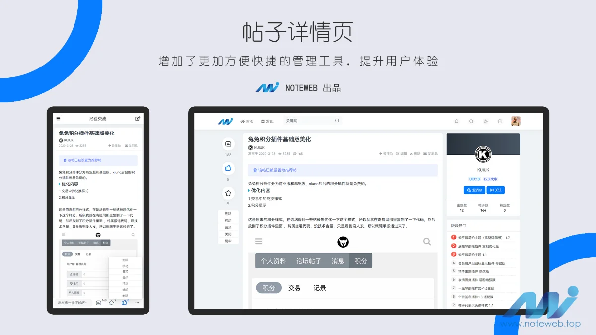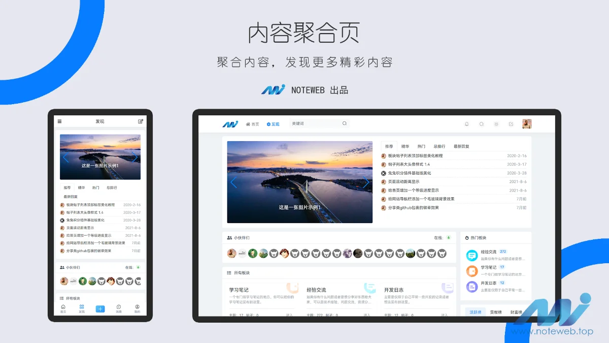 包含 主题 和 适配插件 :消息、私信点赞、收藏,用户关注,用户排行榜,帖子排行榜,签到,精华帖子,搜索,标签聚合页,轮播图,导航栏链接。